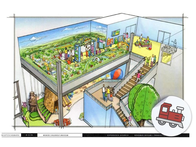 For the first time in 25 years, the Muncie Children’s Museum has embarked on an exciting fundraising campaign to reinvigorate this long time staple in Muncie, Indiana. Since 1977, the Muncie Children’s Museum has provided fun educational and interactive entertainment for children of all ages with numerous unique play areas. We are so grateful for our wonderful community and are excited to announce we’ve already raised over $2.6 million! Check out the renderings of our new model train layout and water table coming mid-summer/early fall 2023 to the MCM!
