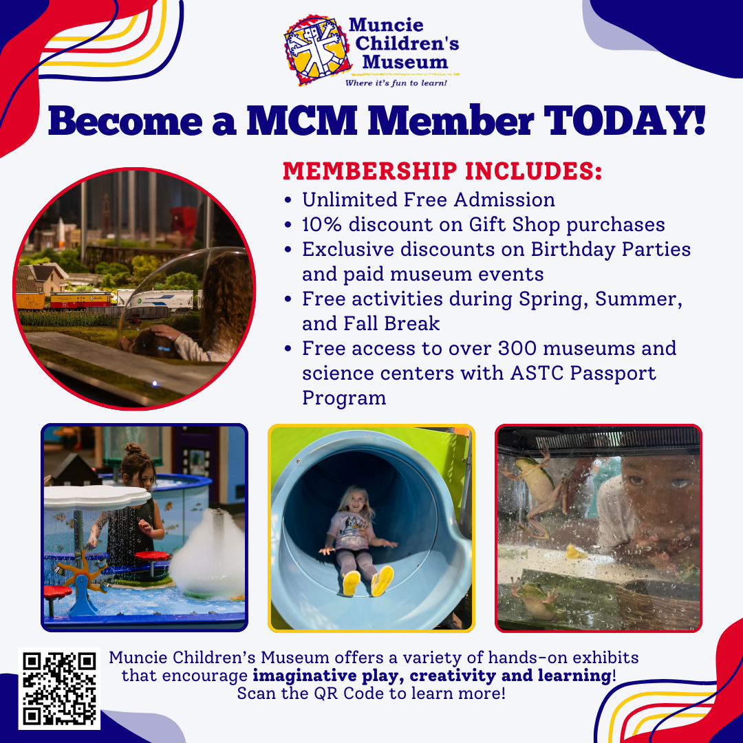 Includes two (2) adults living in the same household and their children or grandchildren through age 18. To purchase this membership, proof of enrollment in one of our qualifying programs is required. A complete list of qualifying programs is available at www.munciemuseum.com/mcm-access-for-all. Memberships will not be processed until proof of enrollment (such as a photo of your WIC, SNAP, or insurance card) is submitted to krinker@munciemuseum.com.