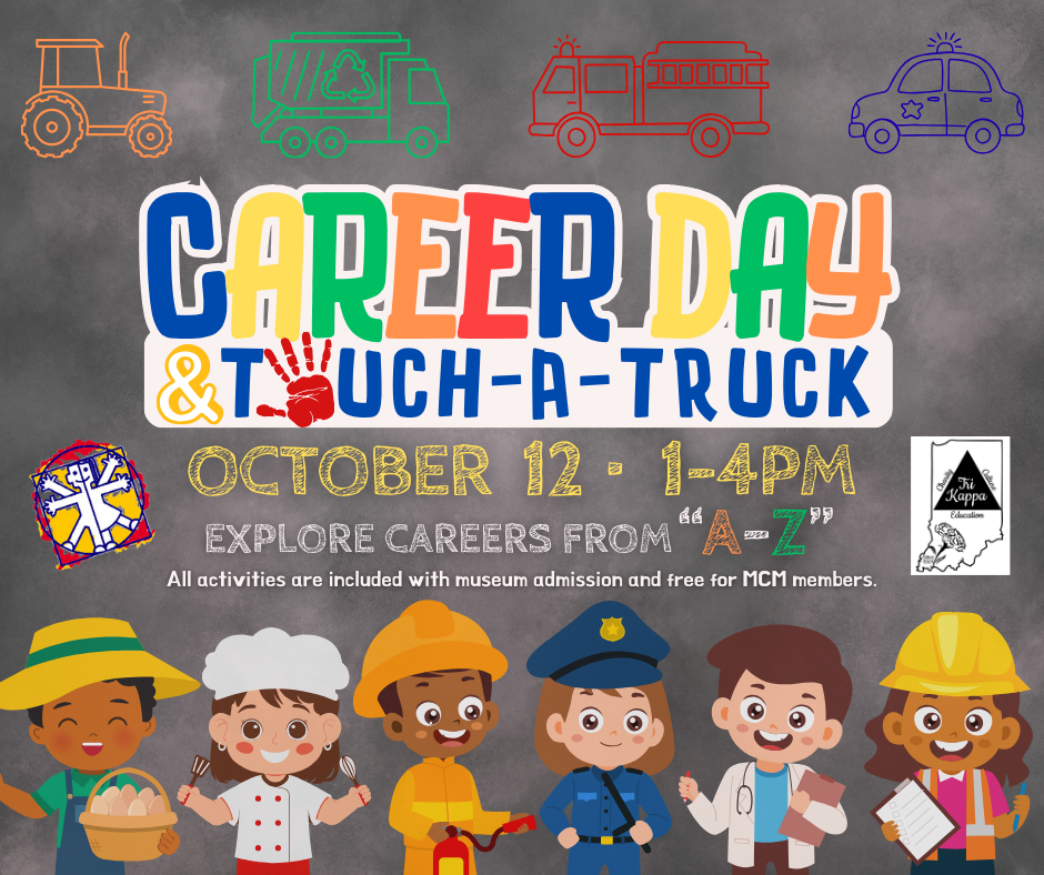 Explore careers from “A-Z” at Muncie Children’s Museum’s Career Day & Touch-A-Truck event on Sunday, October 12th, from 1pm-4pm! Young visitors will be introduced to a world of possibilities as they learn about different professions, explore work vehicles, and discover what may interest them as they imagine their future career. Career Day & Touch-A-Truck is included with museum admission (including MCM Access for All) and free for Muncie Children’s Museum members.