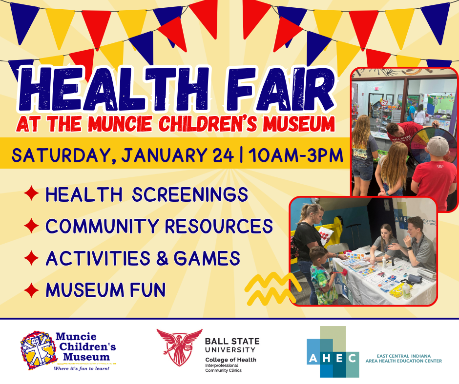 Join us for a FREE Health Fair at the Muncie Children’s Museum on Saturday, January 24, from 10 am to 3 pm.