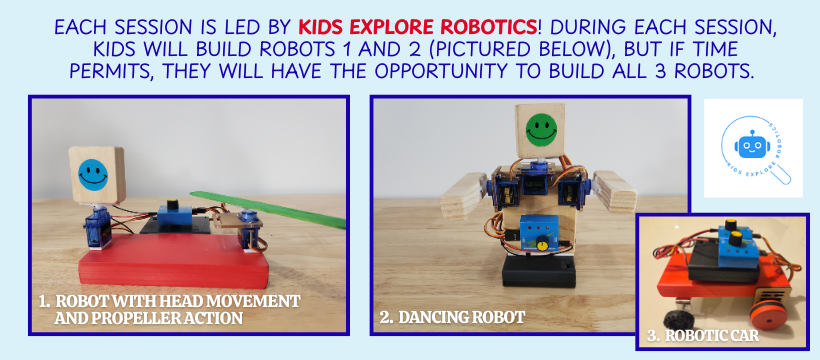 Check out the photos below to see the robots that kids will build during the robotics program!